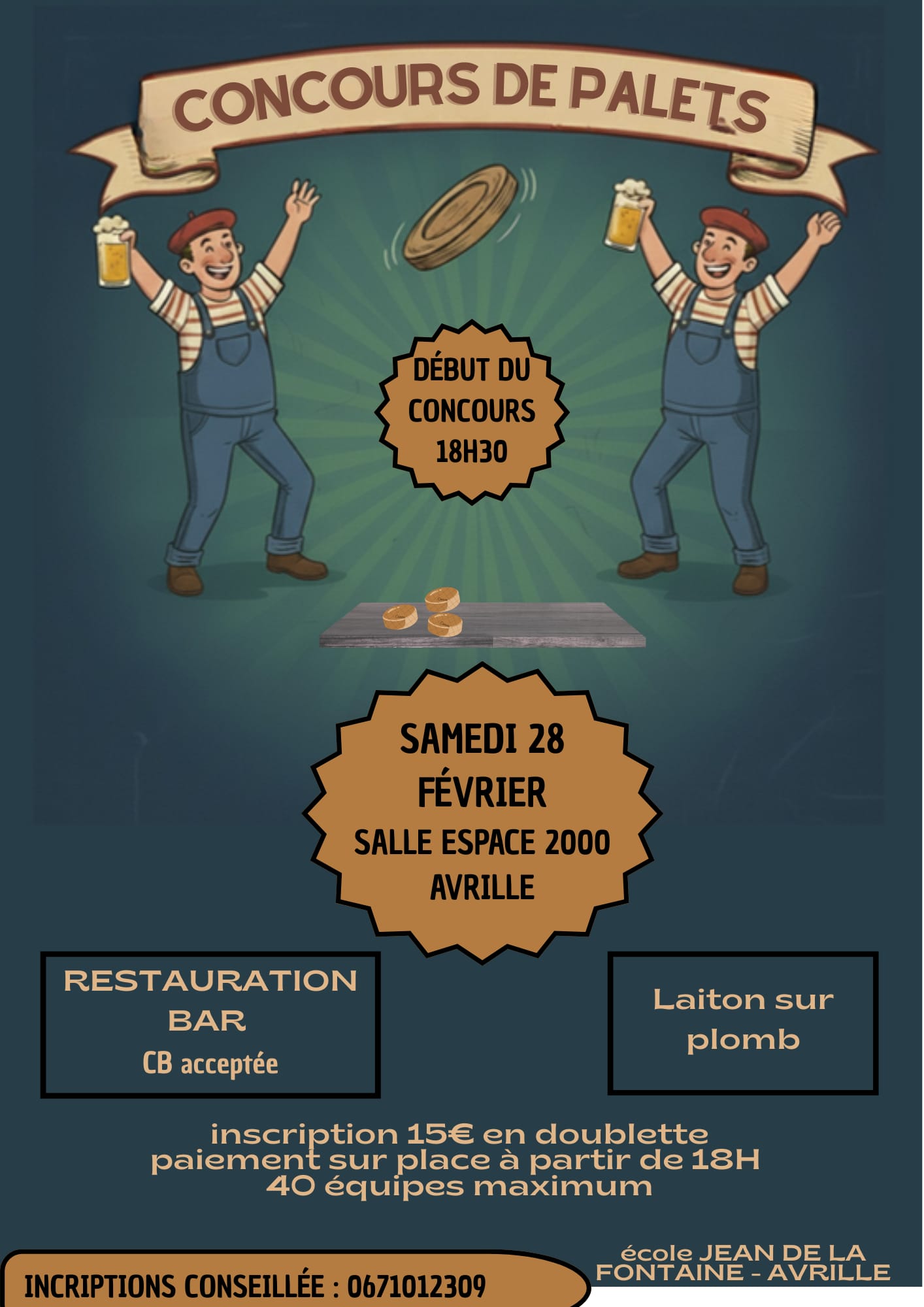 Inscription au 06 71 01 23 09 : 15 euros en doublette