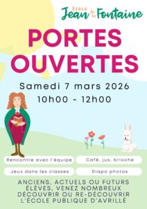 Portes ouvertes école Jean de la Fontaine adeline2026-03-02T16:12:40+01:002 mars, 2026|Actualités| Les portes ouvertes de l’Ecole Jean de la Fontaine auront lieu : Le Samedi 07 Mars 2026 de 10h00 à 12h00 Share This Story, Choose Your Platform! FacebookXBlueskyRedditLinkedInWhatsAppTelegramTumblrPinterestXingEmail Related Posts Conseil municipal du 05 mars 2026 Conseil municipal du 05 mars 2026 Nids de frelons asiatique Nids de frelons asiatique Programme des Médiathèques Programme des Médiathèques Fermeture hivernale du terrain de tennis Fermeture hivernale du terrain de tennis