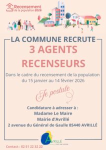 la commune recrute 3 agents recenseurs vacataires.